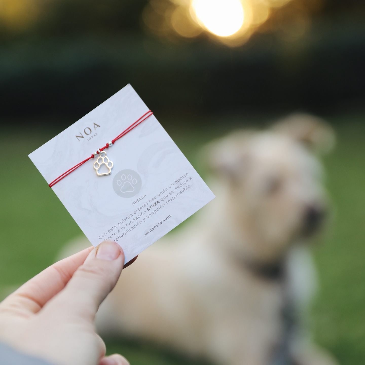 La pulsera "Huella" está fabricada en hilo rojo y contiene un charm de huella de mascota en Plata 925, simbolizando la protección y la conexión emocional con tu compañero fiel. El hilo rojo actúa como amuleto protector y aleja las malas vibras, mientras que la huella de tu mascota representa el vínculo y el amor incondicional que siempre te acompaña.