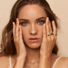 El anillo Kaya Lila está bañado en oro 18k y destaca por su circonita lila, una piedra llena de luz y color que convierte esta pieza en un diseño llamativo y femenino.