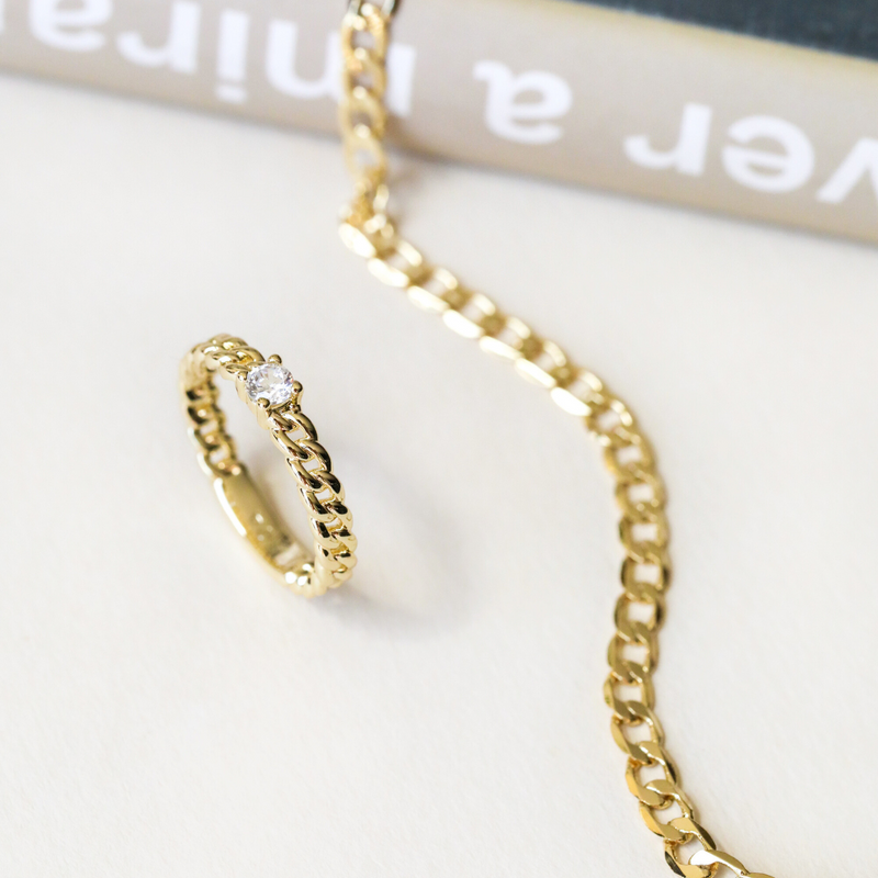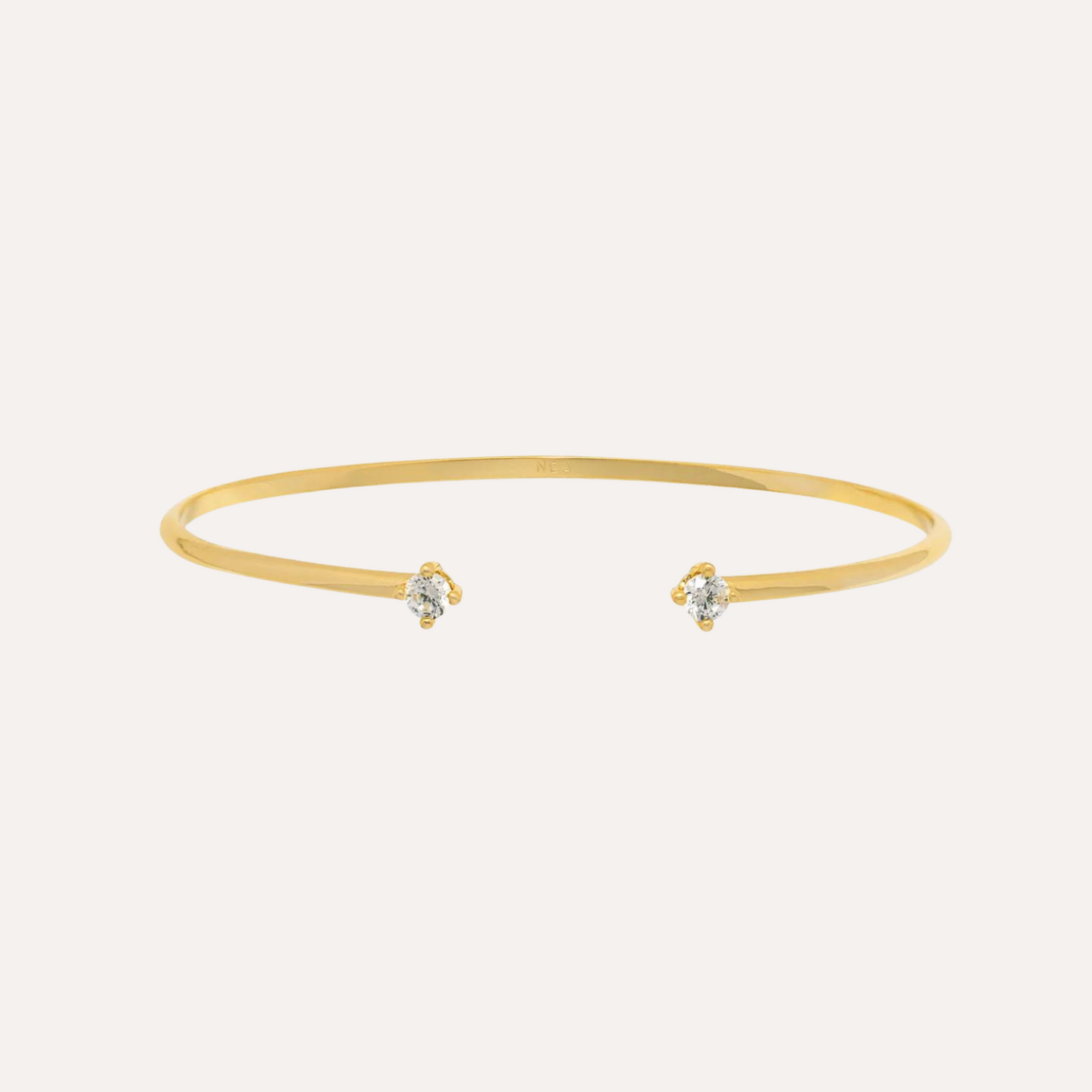 La Pulsera Esclava Clio es una pulsera ajustable que combina estilo en un diseño único. Con un cierre flexible y cómodo, esta pulsera se adapta perfectamente a tu muñeca, brindando un ajuste personalizado para cualquier tamaño. En cada uno de sus extremos, se encuentra un circon brillante que aporta un toque de luz y elegancia. Ideal para usar sola o combinar con otras pulsera, la Esclava Clio es perfecta para cualquier ocasión, agregando un toque de distinción a tu look diario o un toque de glamour para la noche.